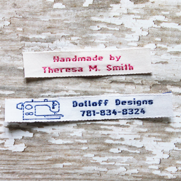 Let the world know who made it with these gorgeous completely woven labels. Loomed from the finest 100% cotton threads...