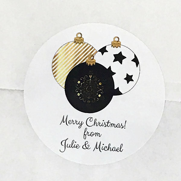 Elegant Ornaments Gift StickersBeautiful Gold, Black and white Christmas ornament Stickers are perfect to adorn your holiday gifs. Personalize your homemade items, presents,...