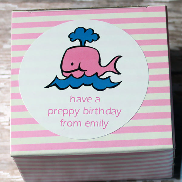 Pink Whale Gift StickersPreppy pink whale Gift Stickers are so so cute! Perfect for adorning birthday gifts or favors. Gift stickers measure 2...