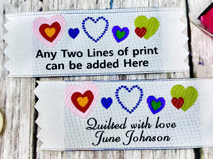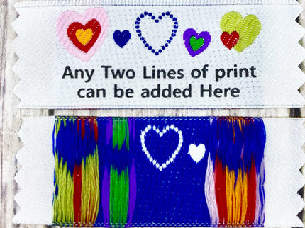 Clothing Label Style 59 HeartsOur most popular woven label design is full of heart. White Satin label woven in multi-color threads allows you to...