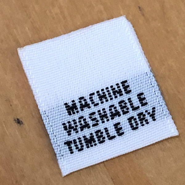 Machine Washable, Tumble DrySize, Care, Content, and Origin Tabs are standard labels available in the designs shown only. No customization is allowed. The...