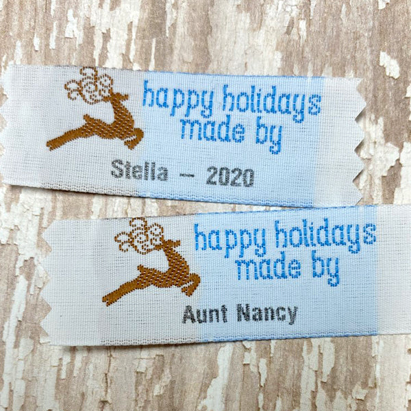 Clothing Label Style 19 ReindeerJust in time for the Holidays, our adorable Reindeer labels are woven with "Happy Holidays made by" Select a line...