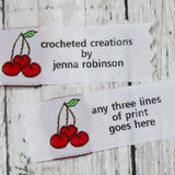 Personalized woven labels with Cherries will add that special touch to your creations. Select your Own 3 Lines of text to...