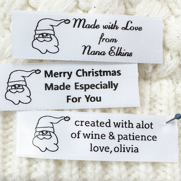 Santa Sewing LabelJust in time for the holidays. Our Santa Clothing Tag is adorable and can be printed with any three lines...