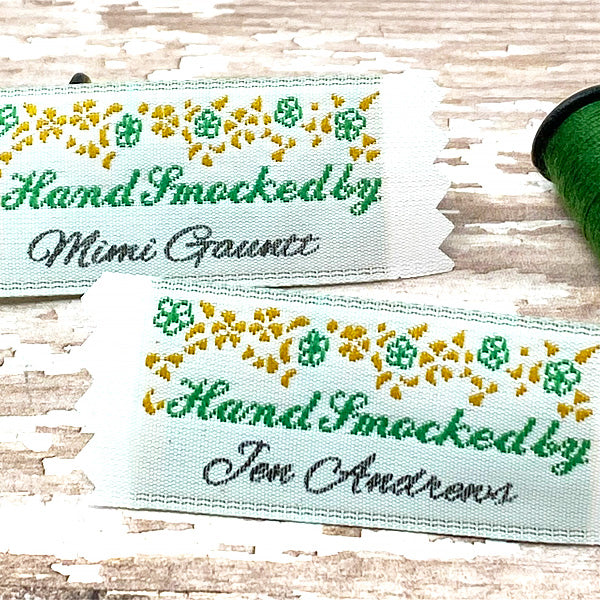 Calling all of our Hand Smockers! Our Hand Smocked by woven labels are simply precious. Woven with Hand Smocked by...