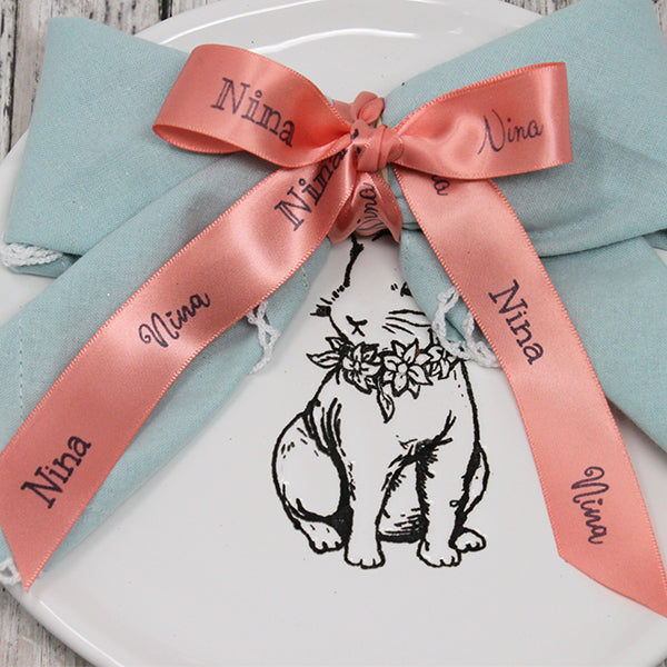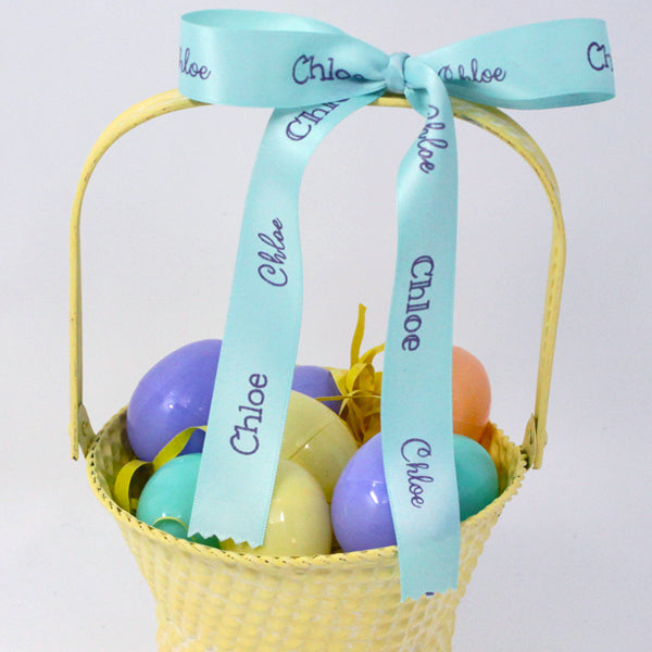 7/8" Personalized Easter Name RibbonNEW 7/8" Personalized Satin Name Ribbon. Your Printed ribbon will come with approximately 1" between each imprint. Ribbon colors may...