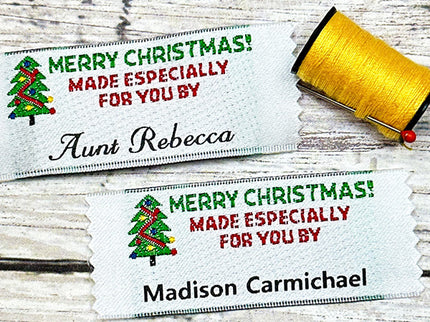 Clothing Label Style 55 Merry ChristmasBack in stock and just in the nick of time for Christmas! Woven Merry Christmas Craft Labels featuring your name at the...