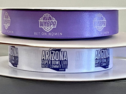 NEW ORDER Custom Logo 7/8" Satin Ribbon1 Color Imprint on our Luxurious Satin Ribbon. Add your artwork, logo or text onto our luxurious 7/8" satin ribbon....