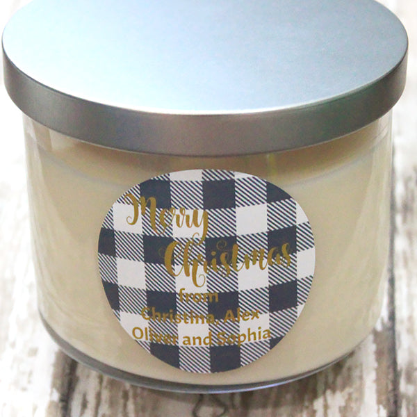 Grey Plaid Gift StickersPlaid is all the rage this season! These adorable personalized holiday stickers are perfect for candles, gift bags, baked goods...