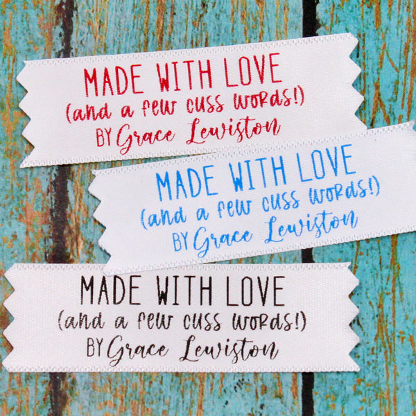 Made with Love+ Cuss Words Humor Satin LabelTell them how you really feel with our new "Made with Love & a Few Cuss Words" satin printed label....
