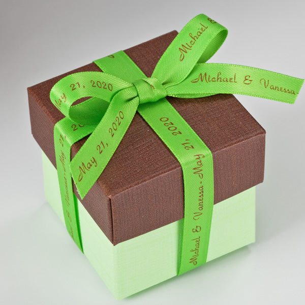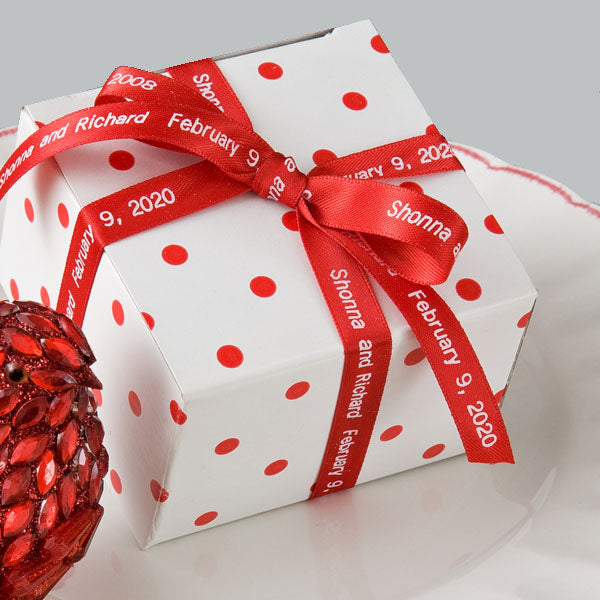 Personalized Wedding Ribbon 3/8"- 36 ColorsOur beautiful 3/8 inch personalized satin ribbon comes on a continuous roll so you can cut exactly where you need...