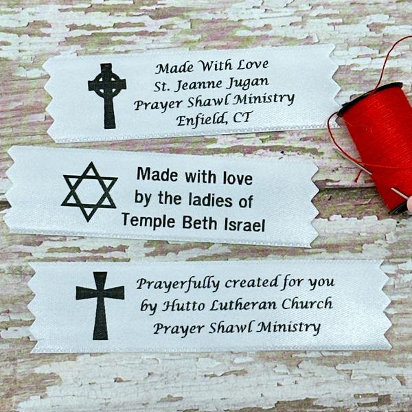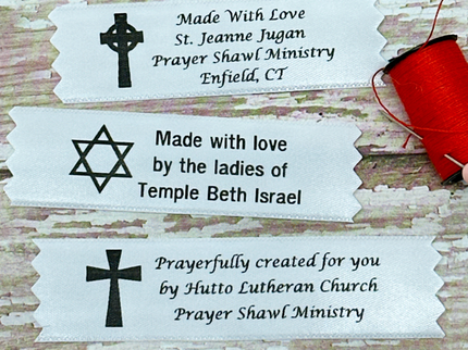 Prayer Shawl White Satin LabelDesign Is as Shown, Select one or two lines of print under the Design. Labels measurements are approximate and will...
