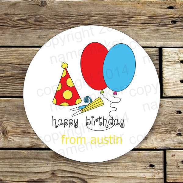 Boys Birthday Gift StickersOur personalized happy birthday party hat stickers are perfect for birthday parties yet adorable as a gift giving sticker too. Gift...
