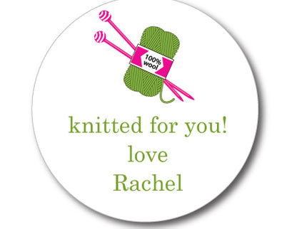 Round Knitting Needles Gift Stickersmeasures 2 1/2" x 2 1/2" round up to 3 lines of text enter your wording and we will adjust...